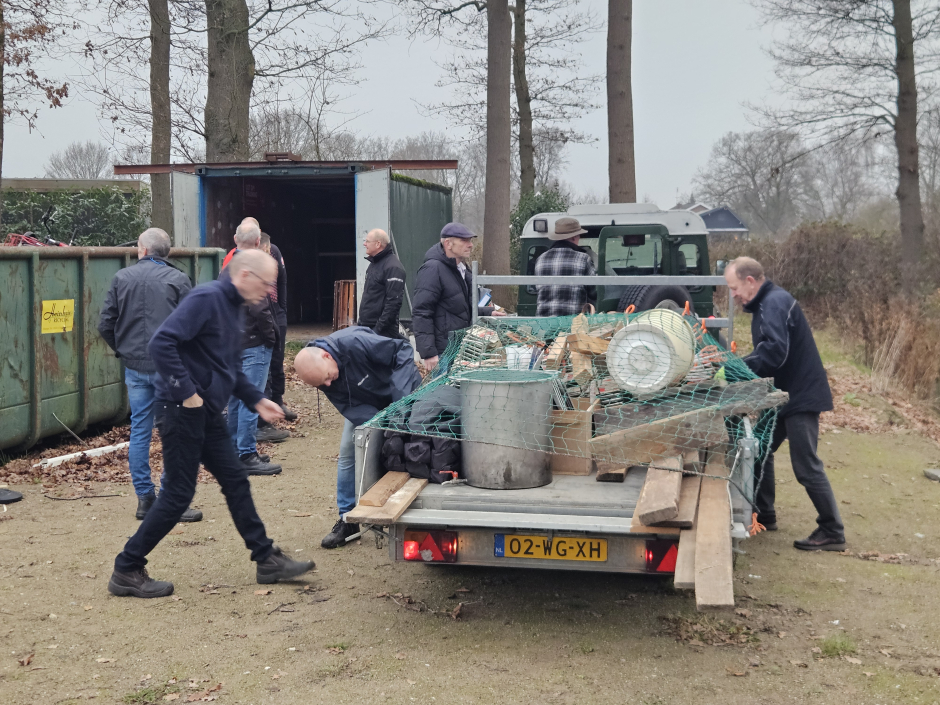 Afgelopen zaterdagochtend was het geluid van talrijke bladblazers in het Scholtenhagenpark niet te missen. Tientallen leden waren onder het motto 'vele handen maken licht werk' vol enthousiasme naar de Dievelaarsschuur getogen om het nieuwe clubhuis schoon te helpen maken en in te richten en het buitenterrein in ieder geval winterklaar te maken. Gewapend met harken, hogedrukreiger, bladblazers, bosmaaiers, snoeischaren, bezems, emmers sop en schoonmaakdoekjes, werden gebouwen en terrein even flink opgefrist.