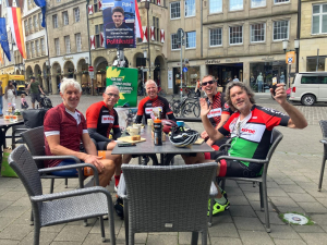 Zondag 13-09-2020, vandaag staan er 13 mannen en 1 vrouw bij DVO voor een lange rit naar Haminklen in Duistland. Af gesproken wordt om een gemiddelde van 28 Km/u te fietsen.We vertrekken om klokslag 08.00 uur de temperatuur is 14 graden. De arm stukken en bij sommige ook de been stukken zijn toch maar even aangedaan. We gaan richting Rekken. Bij Oldenkott gaan we de grens over en meteen rechtsaf. Na 13 kilometer in Duitsland te hebben gefietst gaan we bij Zwillbrock weer Nederland in richting Groenlo.